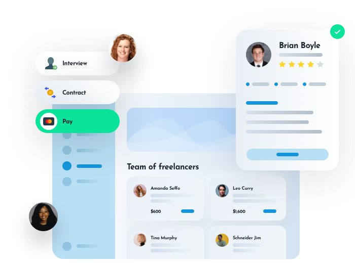 Onboard your own freelancers, or search for new faces. Invite your favorites or let us suggest best fit freelancers for your budget and requirements. View profiles, interview shortlisted candidates, and contract your team with a click.